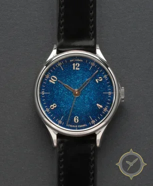 A Dress watch with a versatile 41mm case, that suits most wrists, crafted from stainless steel featuring a blue dial with a unique sparkling vitreous enamel (granular, starry finish) finish.