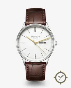 A Dress watch with a bold 41.5mm presence on the wrist, crafted from stainless steel featuring a white dial with a unique matte/satin finish.