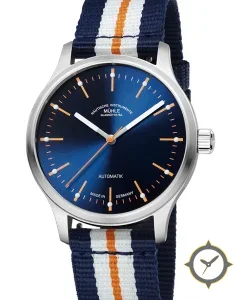 A Sports watch with a bold 47mm presence on the wrist, crafted from stainless steel featuring a blue dial with a unique sunburst finish.