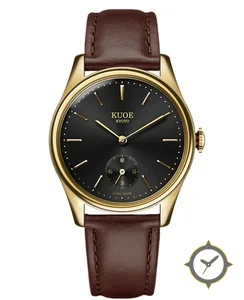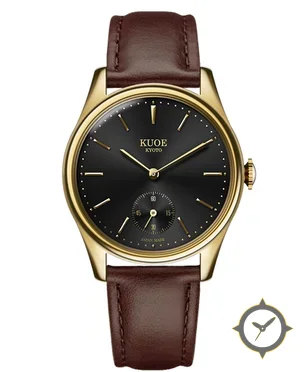 A Dress watch with a vintage-inspired 35.5mm case, crafted from gold featuring a black dial with a unique sunburst (radial gradient) finish.