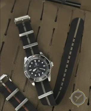 A Dive watch, crafted from stainless steel featuring a black dial with a unique matte finish.