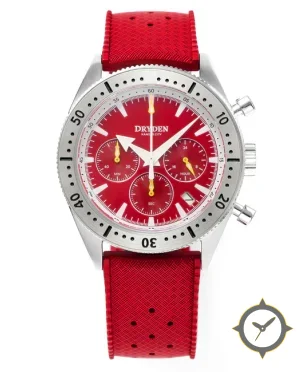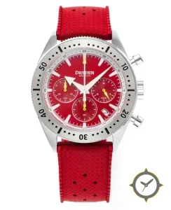 A Chronograph watch with a bold 45.5mm presence on the wrist, crafted from stainless steel featuring a red dial with a unique sunburst finish.
