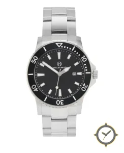 A Dive watch with a bold 49.5mm presence on the wrist, crafted from stainless steel featuring a black dial with a unique matte finish.