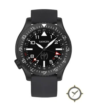 A Pilot watch with a bold 43.5mm presence on the wrist, crafted from stainless steel featuring a black dial with a unique matte finish.