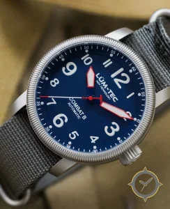 A Field watch with a vintage-inspired 36mm case, crafted from stainless steel featuring a navy dial with a unique matte finish.