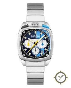 A Chronograph watch with a versatile 40mm case, that suits most wrists, crafted from stainless steel featuring a blue dial with a unique multi-layered (matte and brushed) finish.