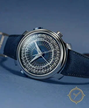 A Dress watch with a bold 49mm presence on the wrist, crafted from stainless steel featuring a blue dial with a unique sunburst finish.