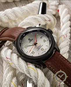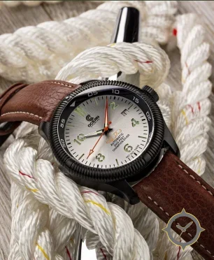 A Dive watch with a vintage-inspired 31.5mm case, crafted from stainless steel featuring a silver dial with a unique sunburst brushed finish.