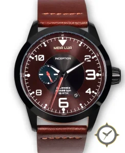 A Pilot watch with a bold 45mm presence on the wrist, crafted from stainless steel featuring a brown dial with a unique sunburst finish.
