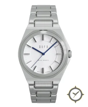 A Minimalist watch with a vintage-inspired 37.5mm case, crafted from stainless steel featuring a white dial with a unique matte with recessed center ring finish.