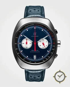 A Chronograph watch with a bold 49mm presence on the wrist, crafted from stainless steel featuring a navy dial with a unique matte finish.
