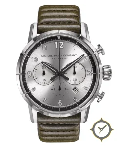 A Chronograph watch with a bold 43mm presence on the wrist, crafted from stainless steel featuring a silver dial with a unique sunburst / radial brushed finish.
