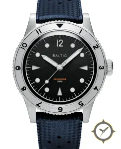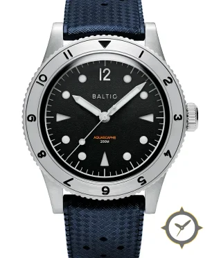 A Dive watch with a vintage-inspired 33mm case, crafted from stainless steel featuring a black dial with a unique grained matte finish.