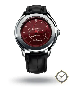 A Dress watch with a bold 46mm presence on the wrist, crafted from stainless steel featuring a crimson dial with a unique high-gloss lacquer finish.