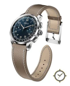 A Chronograph watch with a bold 43mm presence on the wrist, crafted from stainless steel featuring a blue dial with a unique sunburst finish.