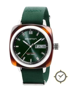 A Vintage watch with a vintage-inspired 36.5mm case, crafted from resin featuring a green dial with a unique sunburst finish.