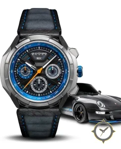 A Racing watch with a versatile 41mm case, that suits most wrists, crafted from stainless steel featuring a black dial with a unique multi-layered / open-worked finish.