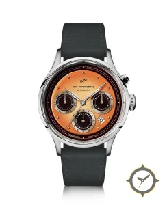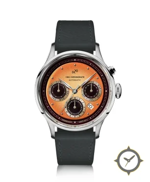 A Chronograph watch with a vintage-inspired 36mm case, crafted from stainless steel featuring a orange dial with a unique sunburst finish.