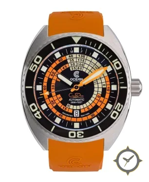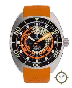 A Dive watch with a versatile 38mm case, that suits most wrists, crafted from stainless steel featuring a black dial with a unique matte central dial with printed concentric scales and luminous filled hands finish.