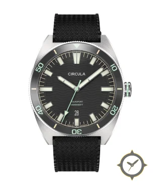 A Dive watch with a versatile 38.5mm case, that suits most wrists, crafted from stainless steel featuring a black dial with a unique embossed wavy texture finish.