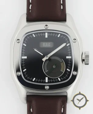 A Driver watch with a vintage-inspired 36.5mm case, crafted from stainless steel featuring a black dial with a unique matte finish.