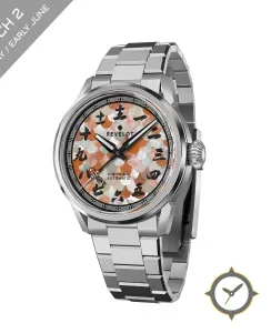 A Luxury watch with a bold 41.5mm presence on the wrist, crafted from stainless steel featuring a white dial with a unique mother-of-pearl finish.