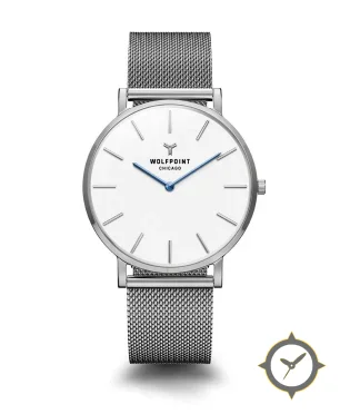 A Minimalist watch with a bold 44mm presence on the wrist, crafted from stainless steel featuring a white dial with a unique smooth lacquer finish.