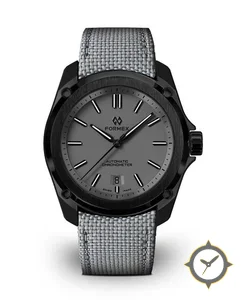 A Sports watch with a bold 44.5mm presence on the wrist, crafted from stainless steel featuring a gray dial with a unique matte finish.