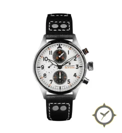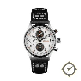 A Pilot watch with a vintage-inspired 35mm case, crafted from stainless steel featuring a white dial with a unique matte lacquer finish.