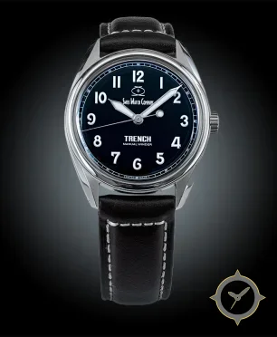 A Military watch with a versatile 39mm case, that suits most wrists, crafted from stainless steel featuring a black dial with a unique glossy lacquer finish.