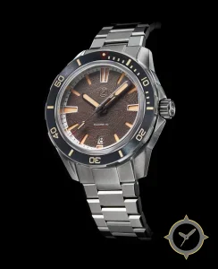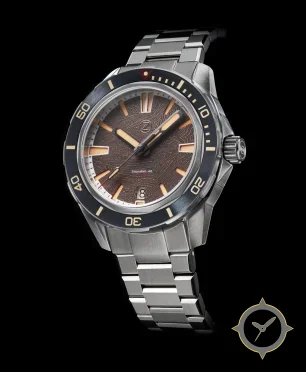 A Dive watch with a versatile 41mm case, that suits most wrists, crafted from stainless steel featuring a brown dial with a unique topographic/contour engraving finish.
