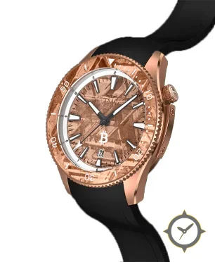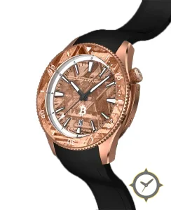 A Dive watch with a bold 46mm presence on the wrist, crafted from gold featuring a gold dial with a unique meteorite-like crystalline texture finish.