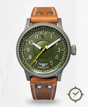 A Pilot watch with a bold 42.5mm presence on the wrist, crafted from stainless steel featuring a green dial with a unique textured, grained matte finish finish.