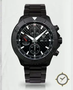A Chronograph watch with a bold 45mm presence on the wrist, crafted from stainless steel featuring a black dial with a unique 3D pyramid texture finish.