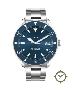 A Dive watch with a bold 41.5mm presence on the wrist, crafted from stainless steel featuring a blue dial with a unique sunburst finish.