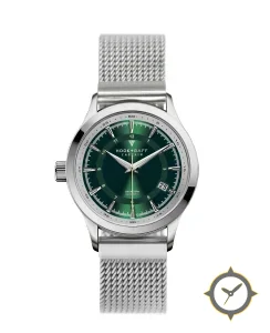 A Nautical watch with a bold 41.5mm presence on the wrist, crafted from stainless steel featuring a green dial with a unique sunburst finish.