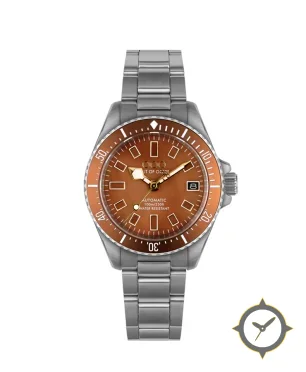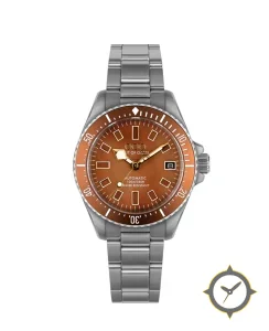 A Dive watch with a bold 42.5mm presence on the wrist, crafted from stainless steel featuring a brown dial with a unique sunburst finish.