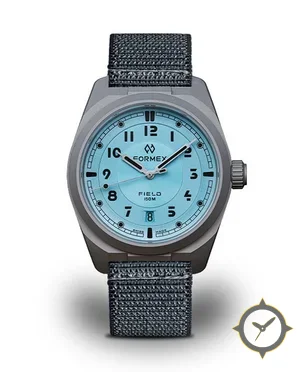 A Field watch with a versatile 38.5mm case, that suits most wrists, crafted from titanium featuring a turquoise dial with a unique matte finish.