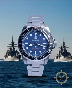 A Dive watch with a bold 45.5mm presence on the wrist, crafted from stainless steel featuring a blue dial with a unique matte finish.