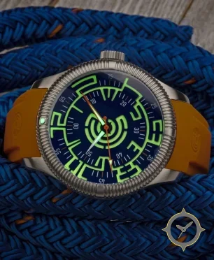 A Dive watch with a bold 52mm presence on the wrist, crafted from stainless steel featuring a blue dial with a unique matte blue background with strong luminous application finish.