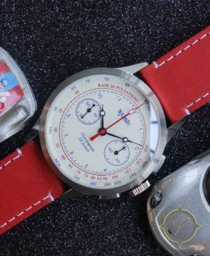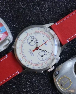 A Chronograph watch with a vintage-inspired 35.5mm case, crafted from stainless steel featuring a white dial with a unique matte finish.