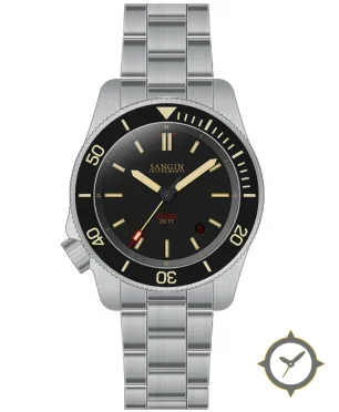 A Dive watch with a vintage-inspired 34mm case, crafted from stainless steel featuring a black dial with a unique matte finish.