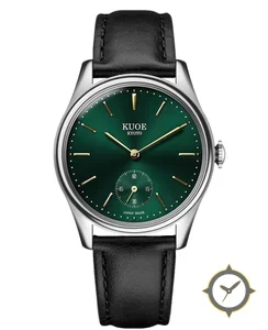 A Dress watch with a vintage-inspired 34.5mm case, crafted from stainless steel featuring a green dial with a unique sunburst (radial gradient) finish.
